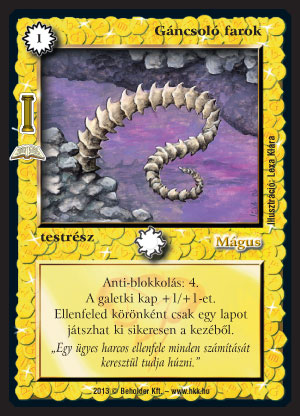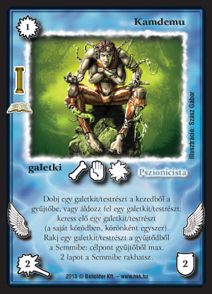 Kamdemu (9): galetkibe ez is nagyon alap. Az, hogy egyért jön és ősmágiás, nagyon sokat jelent követőleszedés ill. drágítás + Átkozott követő ellen. (Mostanában jellemző az Átkozott követő mind Bűvös erdők, mind Lassan járj mellé.) Ha leszedték a követőnket, maga is egész jól üt, pl. egy vele előkeresett Lávaköpettel pontot is tehet a meccs végére. Ha nem sikerült elég sok Rynthust, Lávaköpetet, Gümőfejű Ottót húzni, már pattanhatnak is elő a pakliból (sajnos, a Spóra nem). A kereséshez használt galetki ill. testrész a gyűjtőből semmizésként működik, emiatt, ha csudajó kezünk van, érdemes akár ugyanazt a lapot kikeresni vele, mint amit eldobunk. Kicsit olyan a képessége, mint a köd, bármiből lehet bármi, csak nem kerül VP-be és nem lehet counterelni. Aki jól ismeri a pakliját, mindig előránthatja a legkedvezőbb lapot. Arra vigyázzunk, ha előtte ködöztünk, már ne akarjuk használni a képességét, de ez tapasztalataim szerint ritkán fog előadódni.